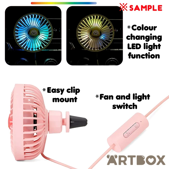 Keep cool all year round with this pretty BT21 Baby mini fan! It’s decorated with an adorable character face mascot detail on the front and is powered with a USB cable. The fan features a changing light mode as well as 3 fan speeds and has a handy clip mount with adjustable angle that can be used in you car.