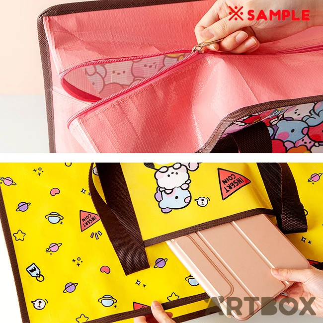 Add a touch of cuteness to your life with this adorable BT21 Minini characters extra large bag! It’s made out of light wipe clean material with woven handles, front pocket and a zipper closure, perfect for leisure, shopping or as an adorable storage solution.