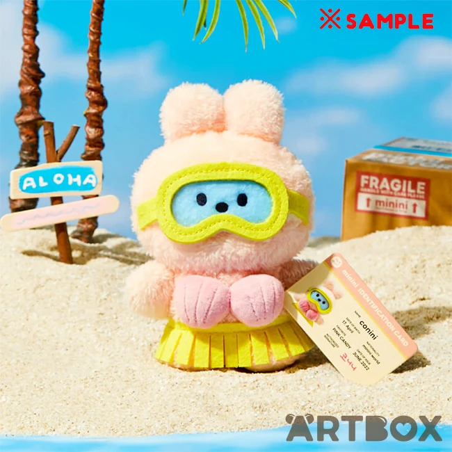 Enjoy the sunshine with this adorable Brown & Friends Minini Summer small mascot plush! It’s made out of soft fuzzy plush fabric with embroidered features and an adorable beach outfit, and comes in a little parcel-style box detailed inside with cute beach towel print for your Minini to lay on.