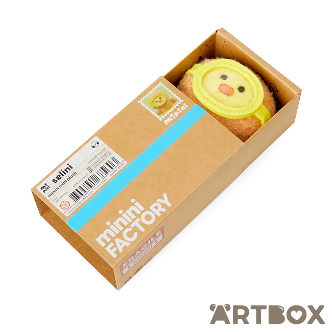 Enjoy the sunshine with this adorable Brown & Friends Minini Summer small mascot plush! It’s made out of soft fuzzy plush fabric with embroidered features and an adorable beach outfit, and comes in a little parcel-style box detailed inside with cute beach towel print for your Minini to lay on.