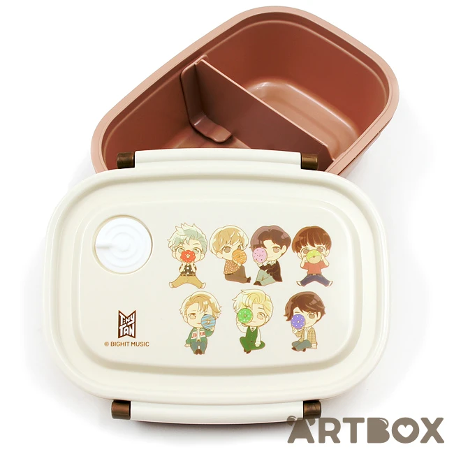 This cute and handy TinyTAN lunch box includes a movable divider to allow you to keep different types of food separate from each other, or you can remove it if you would prefer to have one big bento lunch all mixed together. The lid is printed with an adorable Dynamite MV inspired character design and is kept in place by secure side clips.