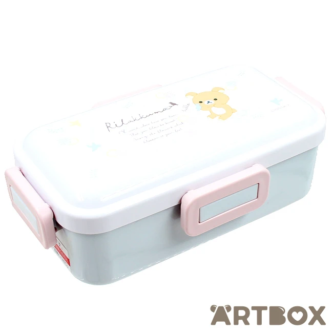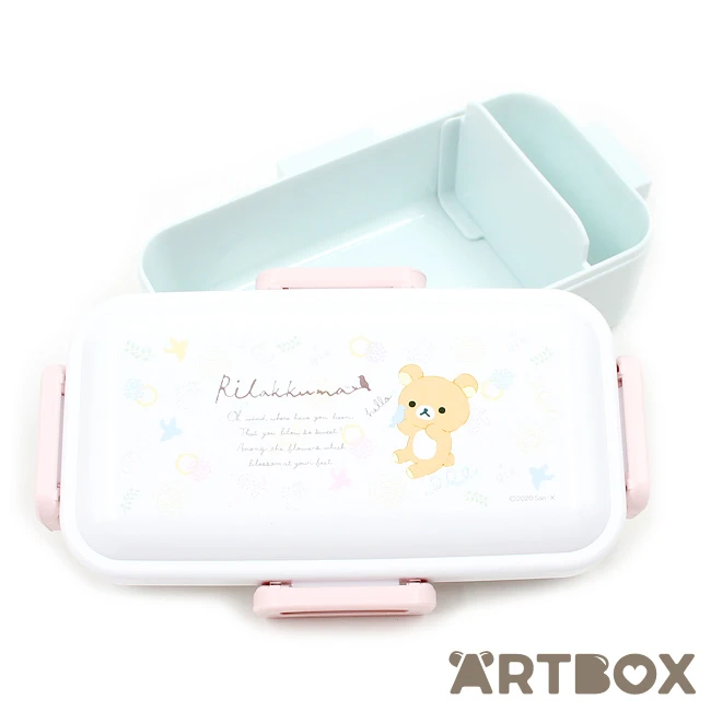 This cute and handy Rilakkuma lunch box includes a movable divider to allow you to keep different types of food separate from each other. The lid is cutely printed with a Rilakkuma design with pretty pastel floral theme and is kept in place by secure side clips.