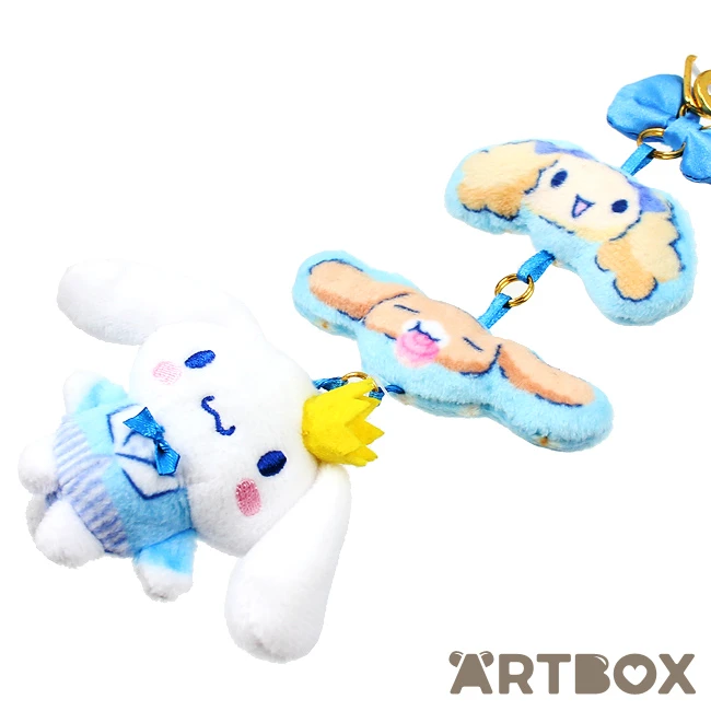 Add a touch of cuteness to your days with this pretty Cinnamoroll Anniversary long keychain! It features a little Cinnamoroll plush mascot as well as two die-cut plush Friend decorations and comes with a lobster clasp to easily attach wherever you’d like.