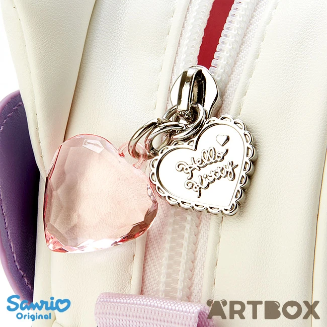 This adorable small shoulder purse is a must have for any Sanrio fan! It’s made out of faux leather style fabric and features a classic character face design decorated with a pretty bow accessory embroidered with little heart details. The bag has an adjustable shoulder strap and can be securely zipped with pretty shaped zipped pulls, perfect to carry your essentials.