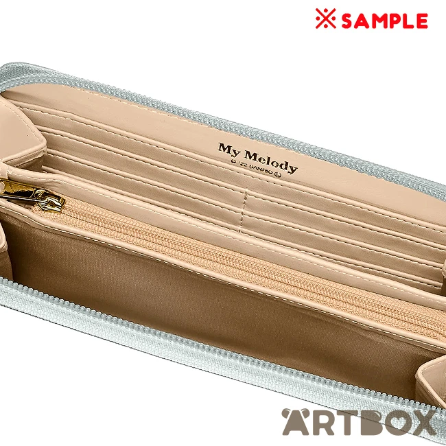 This pretty and elegant long wallet is a must have for any Sanrio fan! It’s made out of textured faux leather style fabric with a pretty colour block detail and an enamel character decoration on the front. The purse closes with a zipper and opens up to reveal pockets for notes and cards, and a zipped coin pocket.
