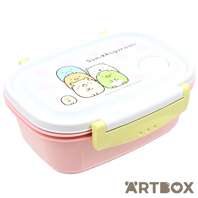 This cute and handy Sumikko Gurashi lunch box includes a movable divider to allow you to keep different types of food separate from each other as well as a steam vent on the lid. The lid is cutely printed with a Sumikko Gurashi design with adorable polka dot theme and is kept in place by secure side clips.
